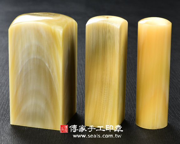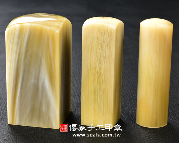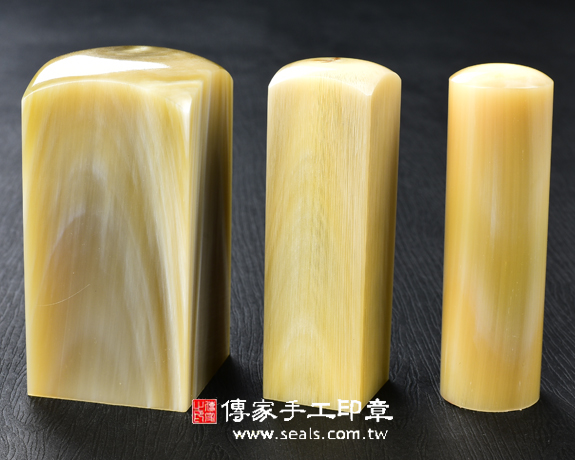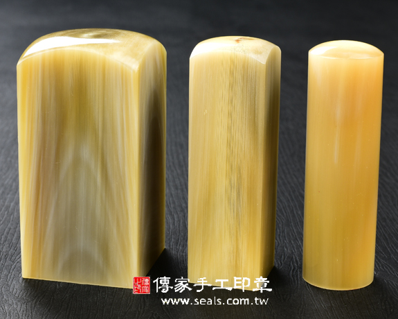 1.傳家手工印章嚴選南非地區的高級「赤牛角」。赤牛角材質溫潤、堅硬,每個赤牛角印章都看得到牛角心,有獨特和天然的牛角紋路,以及半透明的絲透質感。