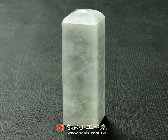 傳家手工印章實際成品:頂級淡綠色細豆種緬甸玉翡翠:公司開運印章(附A貨證書)