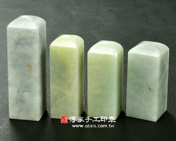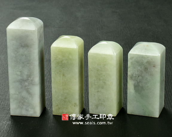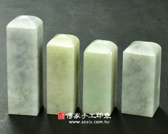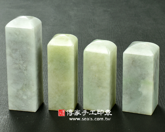 傳家手工印章實際成品:頂級淡綠色細豆種緬甸玉翡翠:公司開運大小章家族(附A貨證書)