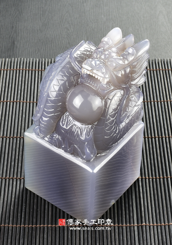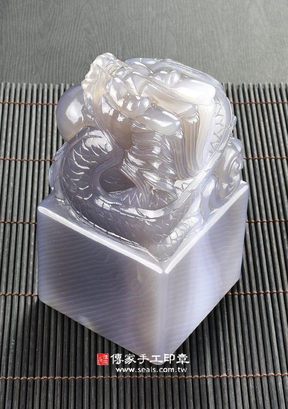 頂級巴西原色瑪瑙精雕蟠龍守珠:廟章、神明印章、大印章依現貨尺寸不同,每一隻印章的定價都不一樣。