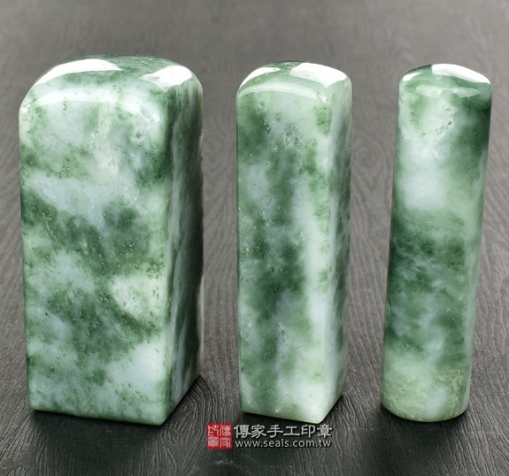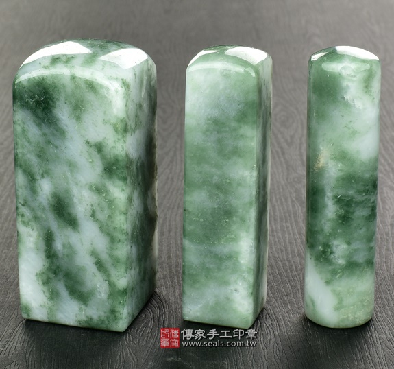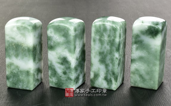 加長型的頂級新疆翠玉公司個人章,為單顆定價加1000元。