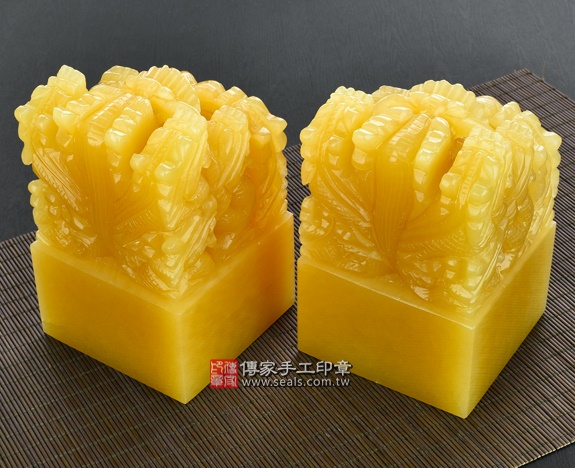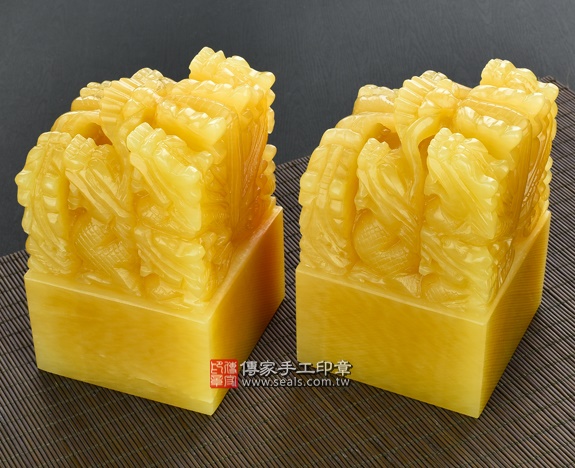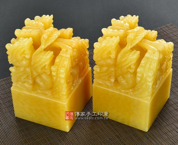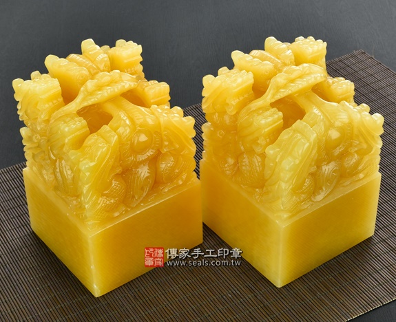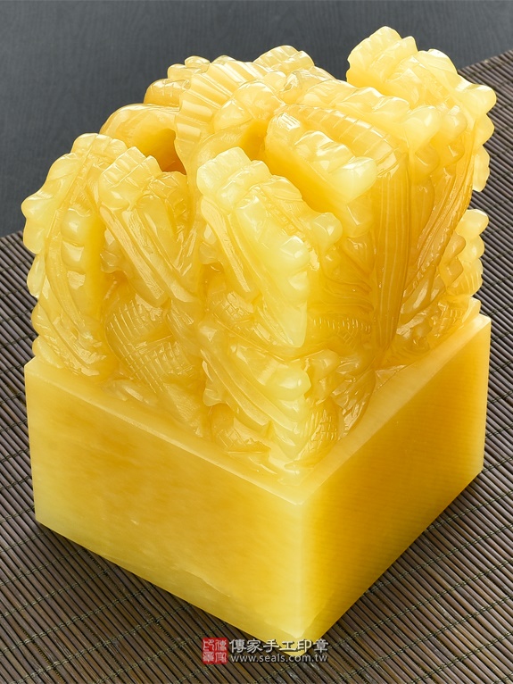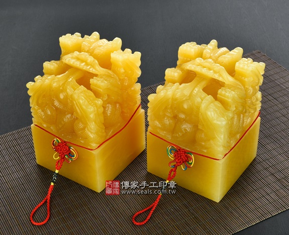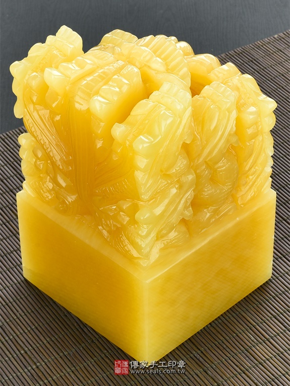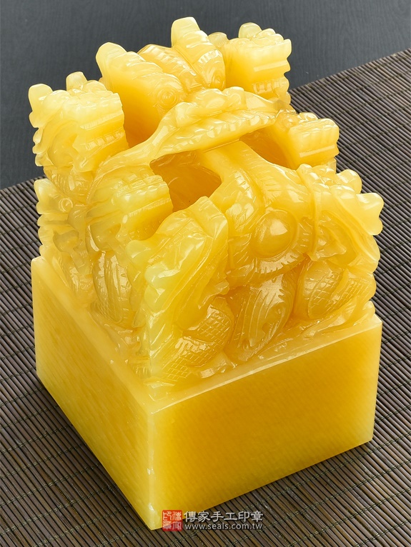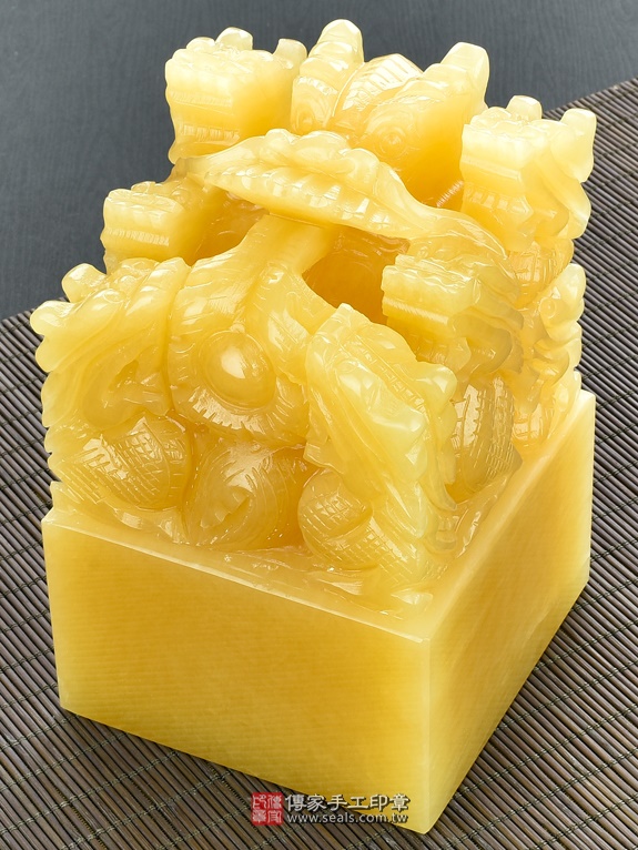 頂級中國黃玉九龍吐珠:廟章、神明印章、大印章會依現貨尺寸不同,每一隻印章的定價都不一樣。