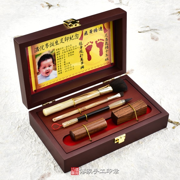 1. 傳家手工印章,特別提供「女寶寶」專用的《女生胎毛化妝刷、胎毛筆、嬰兒三寶》,此款嬰兒商品,結合了「臍帶印章、胎毛筆、胎毛化妝刷、足印、木盒(竹盒)」,非常具有紀念意義價值,是父母送給女寶寶一生紀念的好禮物。