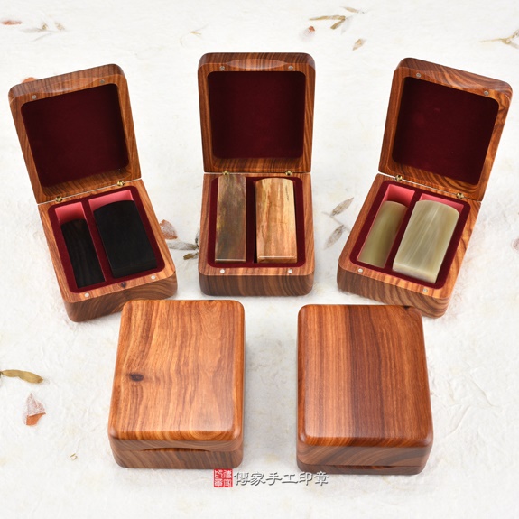二. 喜歡木盒、竹盒、真牛皮皮紋盒的朋友,可以加價購買。傳家提供各種精美款式和材質的印章盒子,讓印章有一個屬於自己的家。