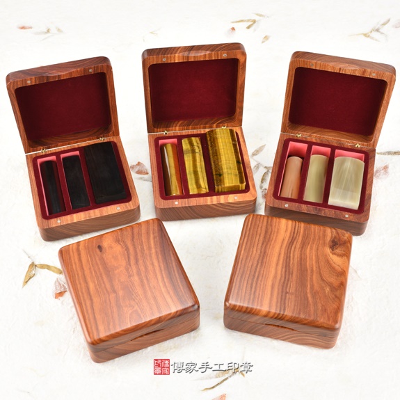 二. 喜歡木盒、竹盒、真牛皮皮紋盒的朋友,可以加價購買。傳家提供各種精美款式和材質的印章盒子,讓印章有一個屬於自己的家。