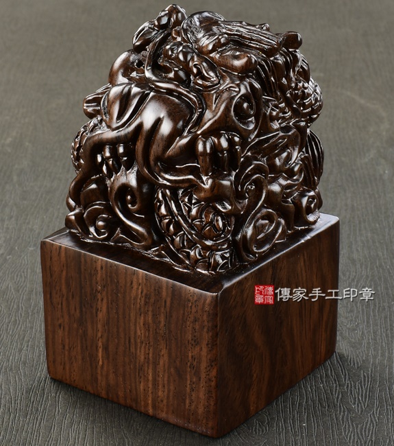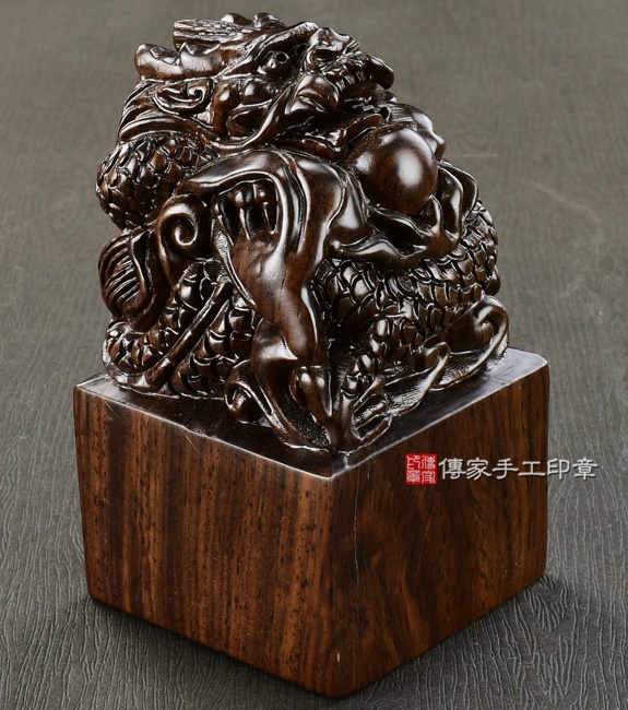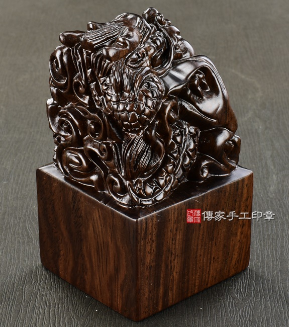 頂級南非黑檀木精雕龍:廟章、神明印章、大印章會依現貨尺寸不同,每一隻印章的定價都不一樣。