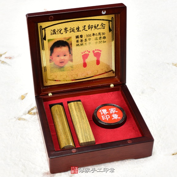 購買傳家嬰兒產品包含:(臍帶章、胎毛印章、胎毛筆、嬰兒三寶等...)金額超過2000元,免費贈送嬰兒成長古禮:「抓周、收涎、滿月剃頭」三選一。