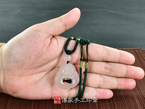 傳家手工印章實際成品:胎毛彌勒佛飾品示意圖1