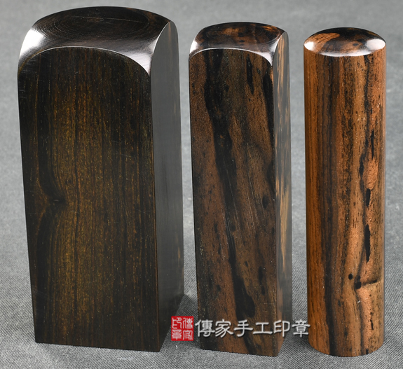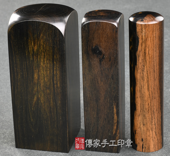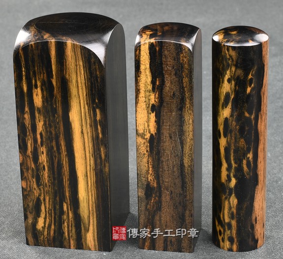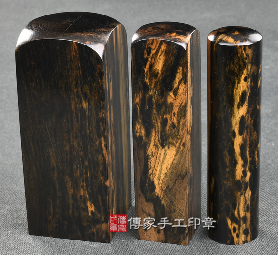 1.傳家手工印章嚴選南美洲、南非地區的高級「豹紋黑檀木」。黑檀木生長速度緩慢,但是木材的硬度和密度卻很高,入水即沉,為頂級木材之一。