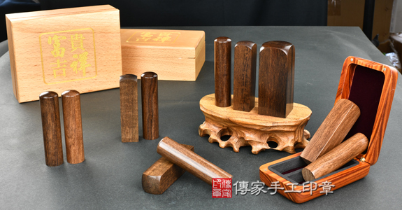 傳家手工印章實際成品:頂級黑紫檀木:開運公司大小印章合照示意圖1