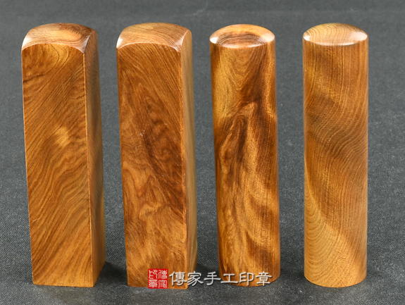 傳家手工印章實際成品:頂級肖楠木樹瘤:開運印章、臍帶印章、公司印章合照示意圖2