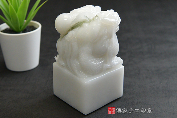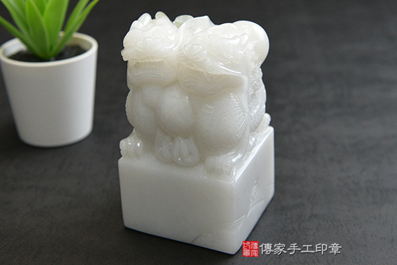 3. 使用白玉當作開運印章,補土和金的能量,可以增加個人的穩定度、冷靜思考的力量,以及加強對財富的敏感度。因此適合作為開運印章、紀念印章、結婚對章來使用。
