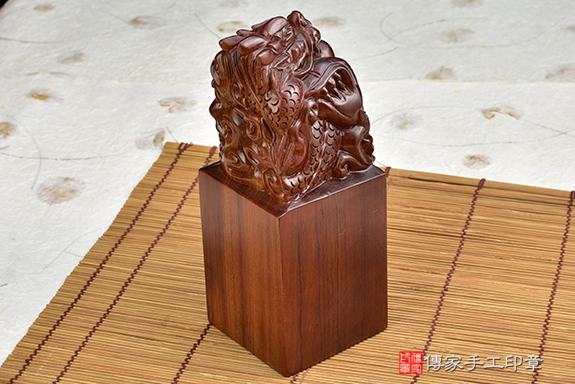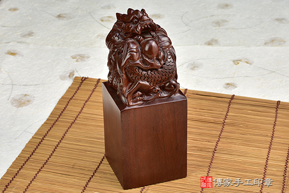 傳家手工印章實際成品:頂級紫檀精雕龍廟章:廟章、神明印章、大印章