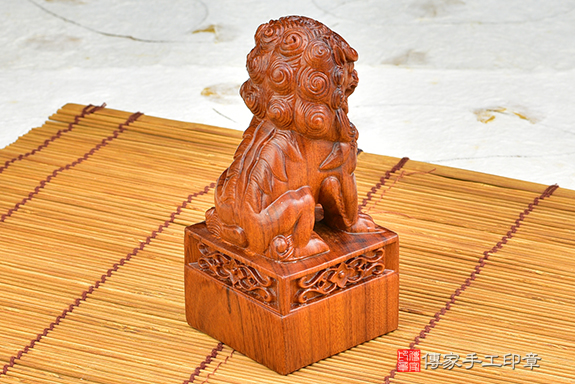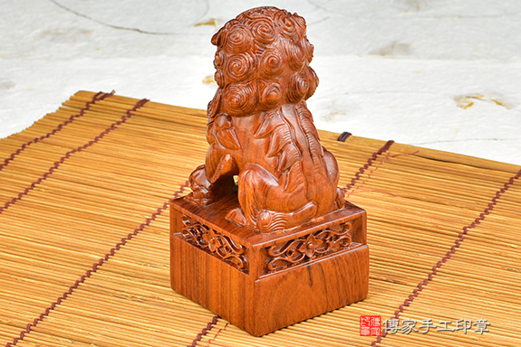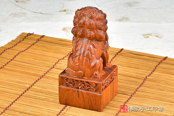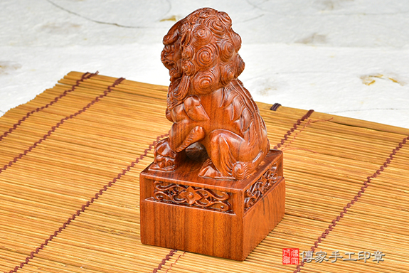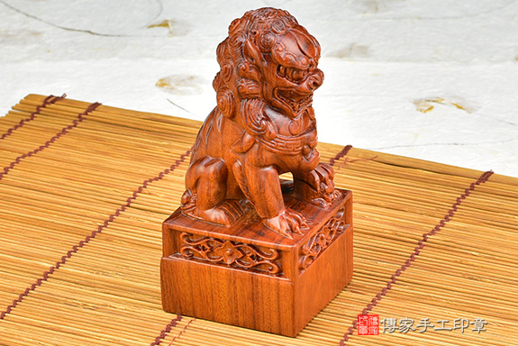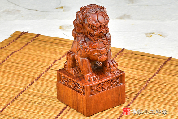 傳家手工印章實際成品:頂級紫檀精雕獅子廟章:廟章、神明印章、大印章