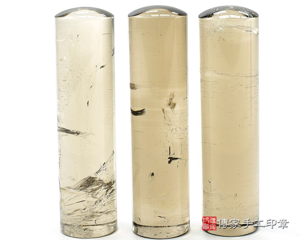 一. 傳家手工印章實際成品: 頂級巴西深色茶晶(一般型) 及 頂級巴西深色茶晶(加長型)