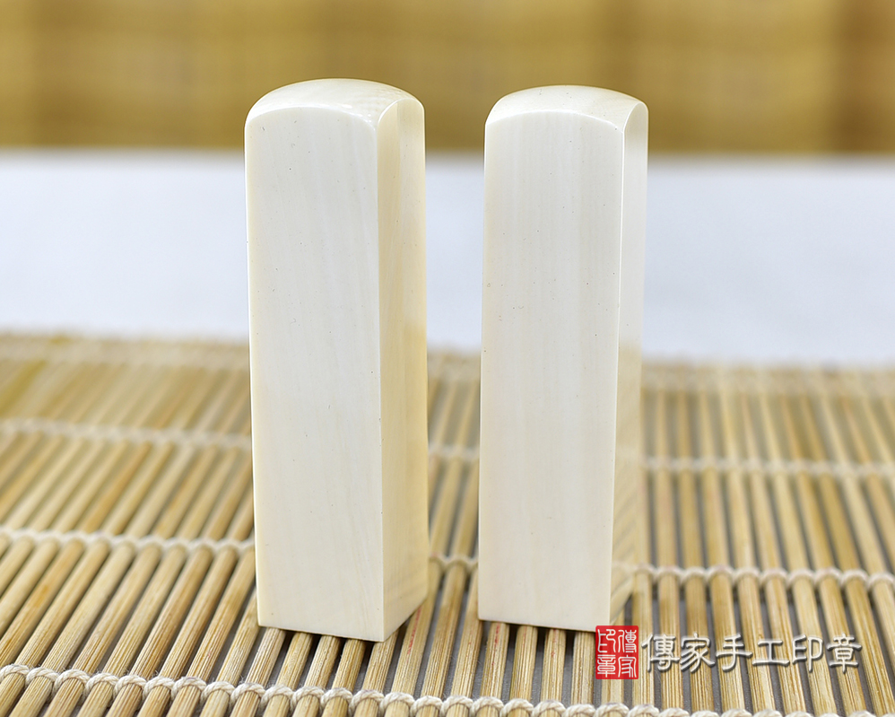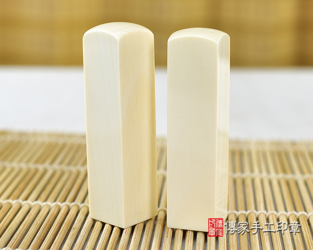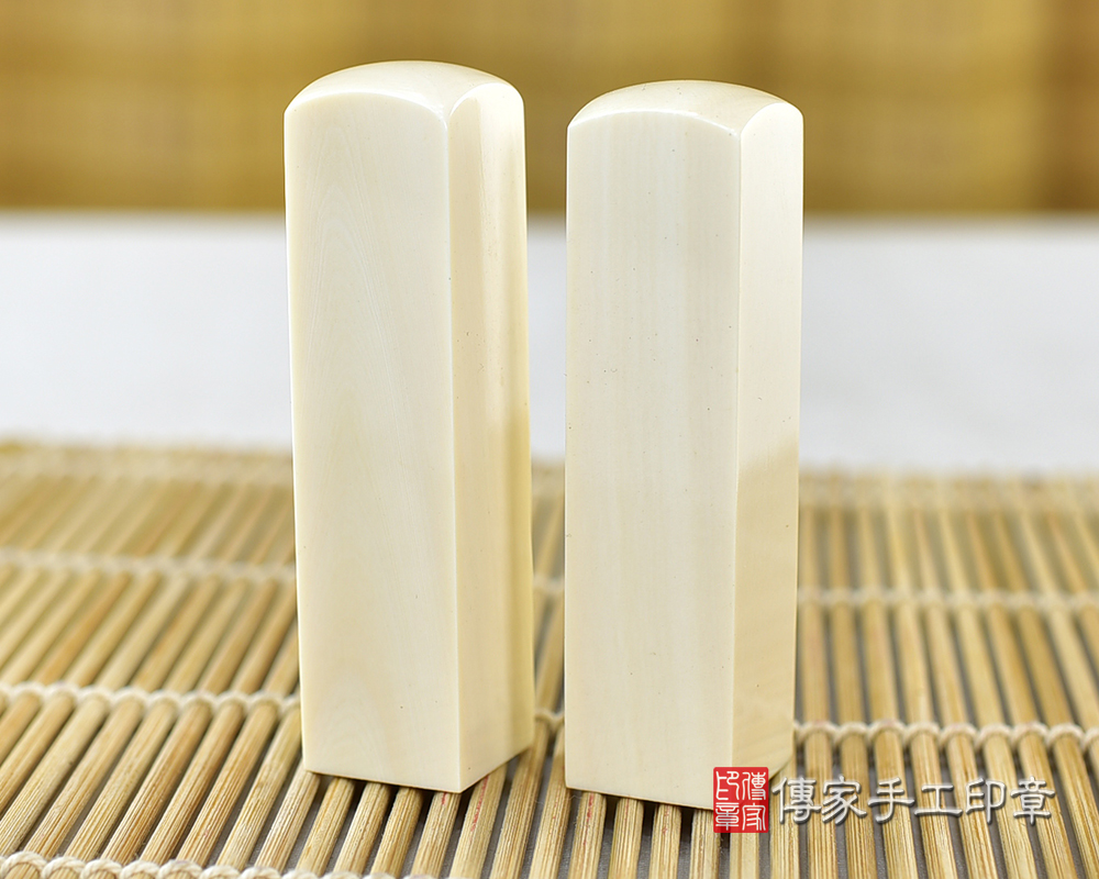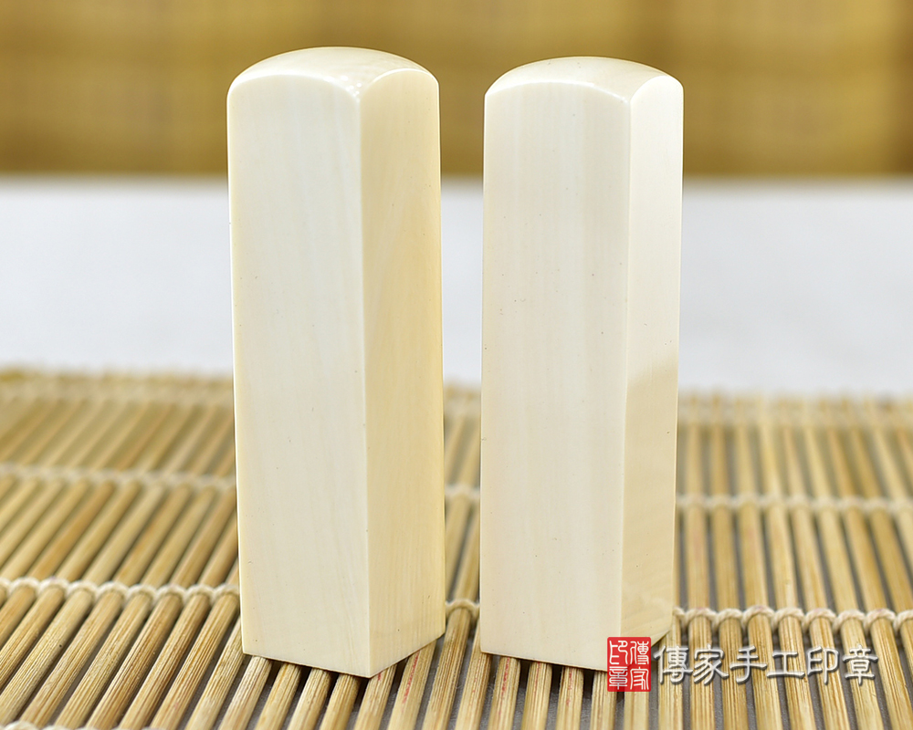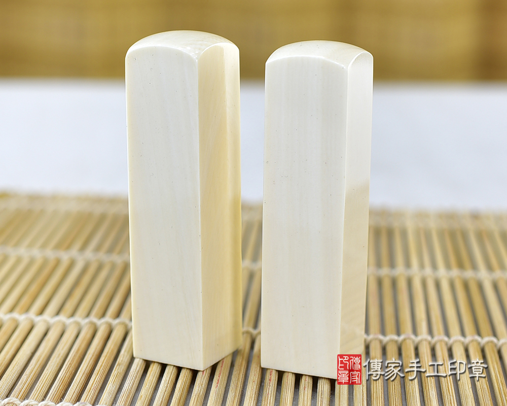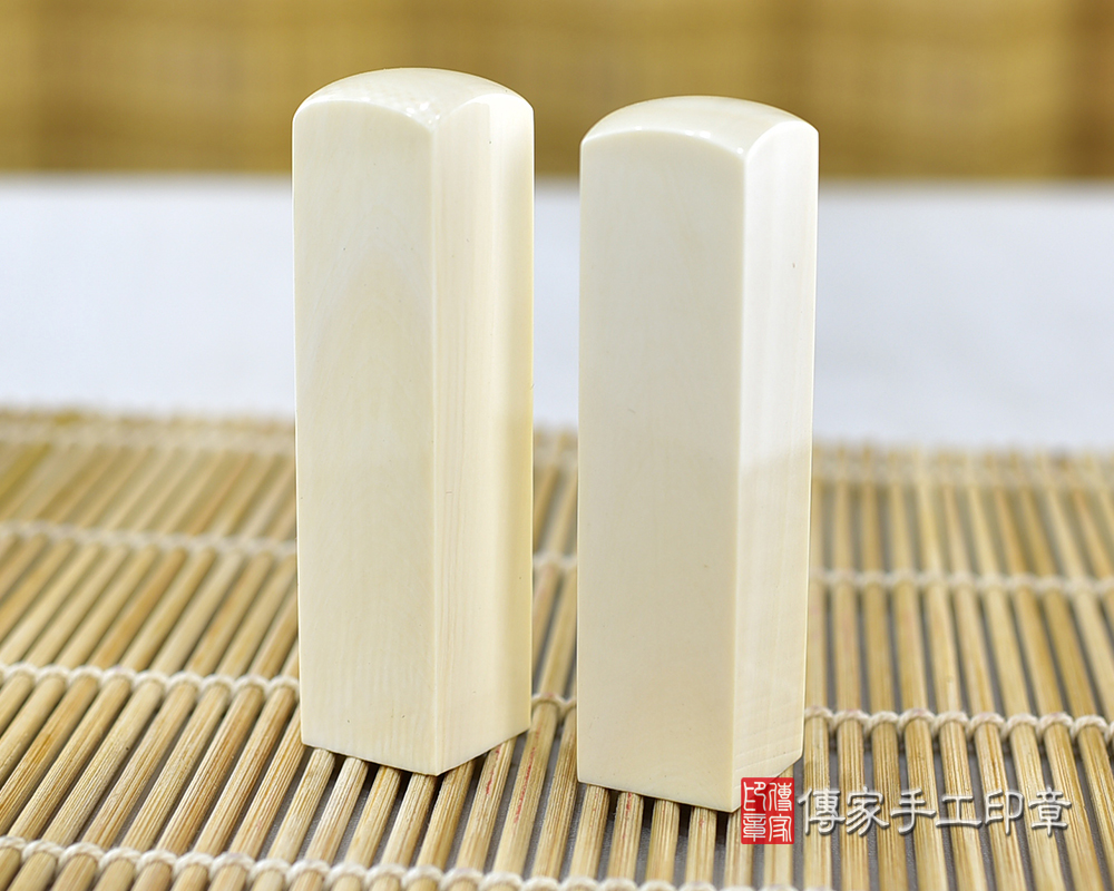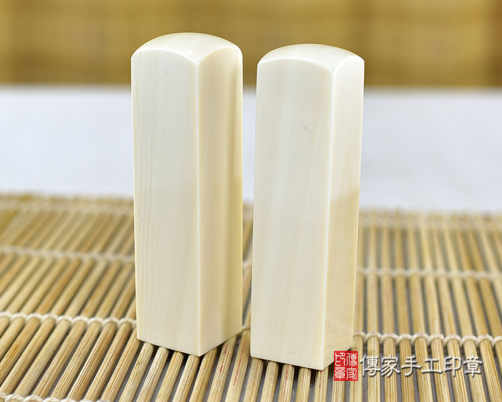 l象牙印章是全部的牙類印材裡面,最高級的一種。象牙材質白皙,有屬於自己的紋理。象牙印章的印材硬度高、密度也高,這代表印材可使用的時間很長。通常只要小心保管,可用一輩子之久。