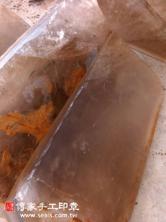 一. 傳家手工印章實際成品: 頂級巴西冰種茶晶(一般型) 及 頂級巴西冰種茶晶(加長型)