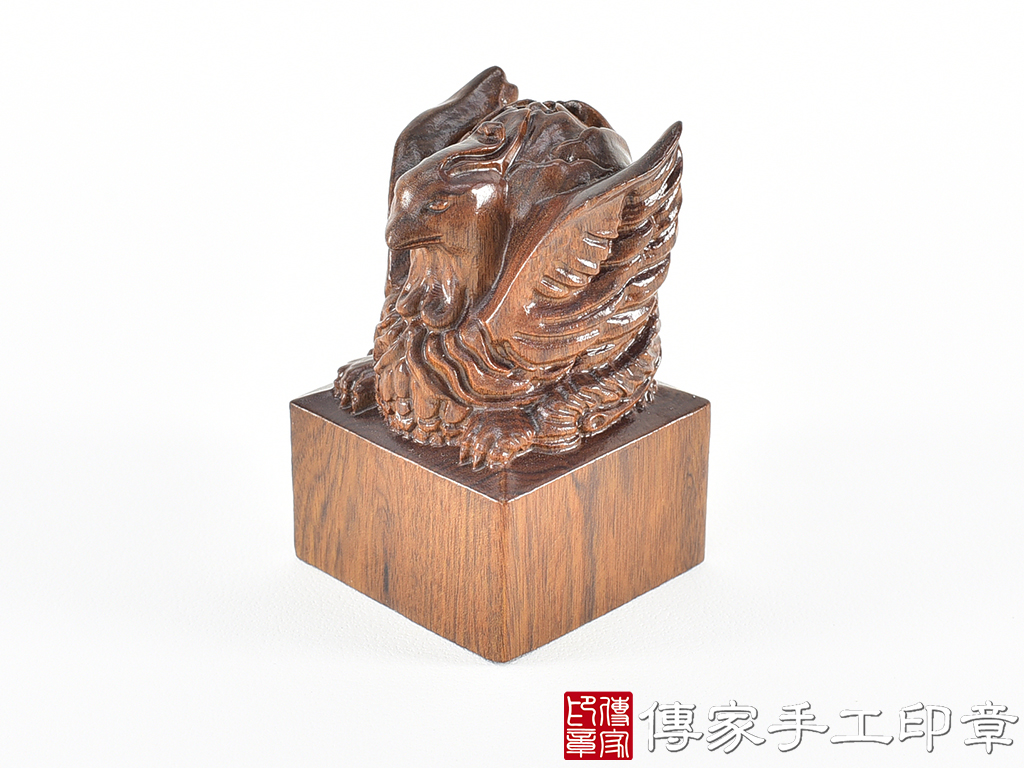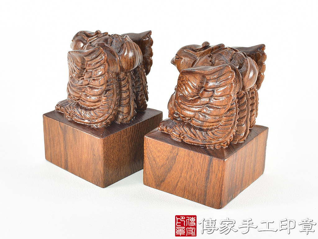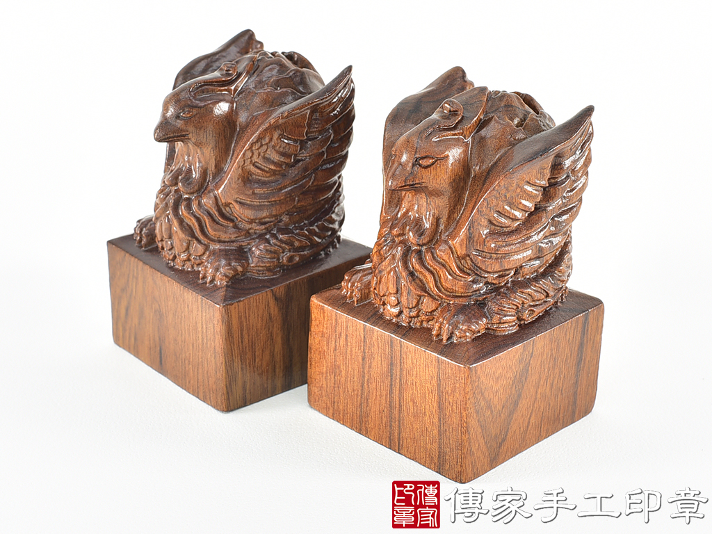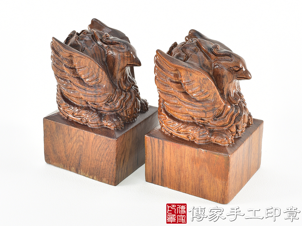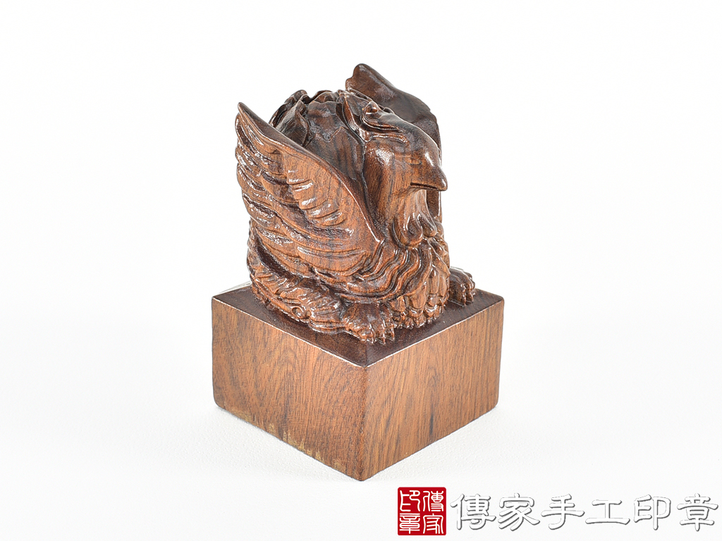 傳家手工印章實際成品:頂級紅紫檀木精雕鳳凰廟章合照