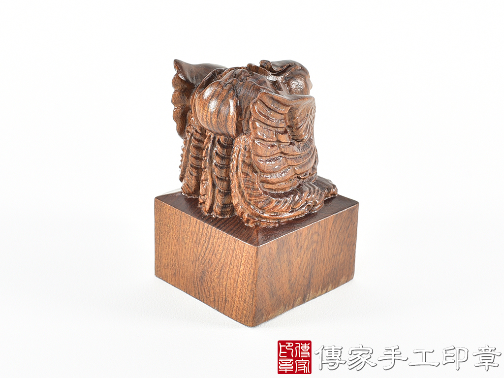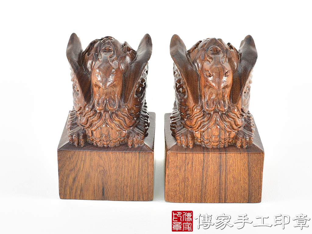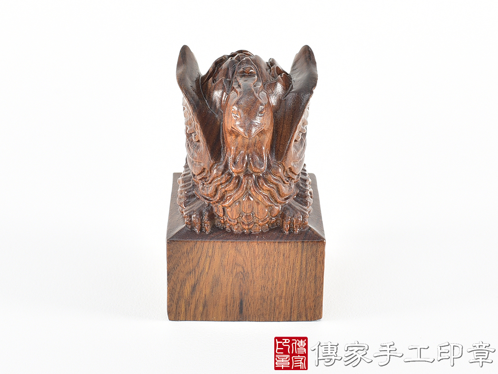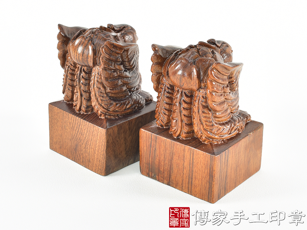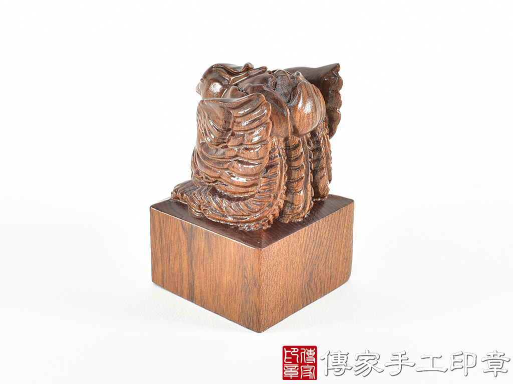 傳家手工印章實際成品:頂級紅紫檀木精雕鳳凰廟章合照