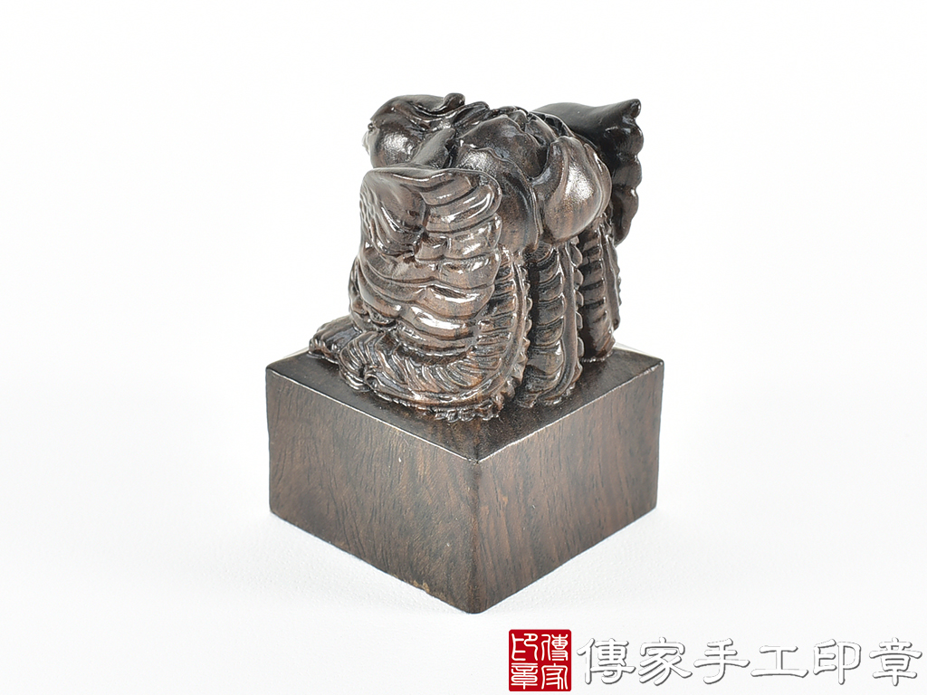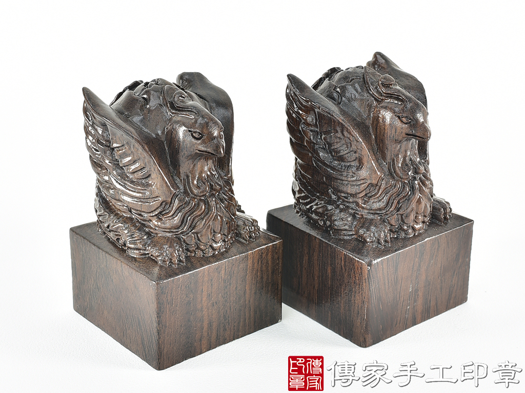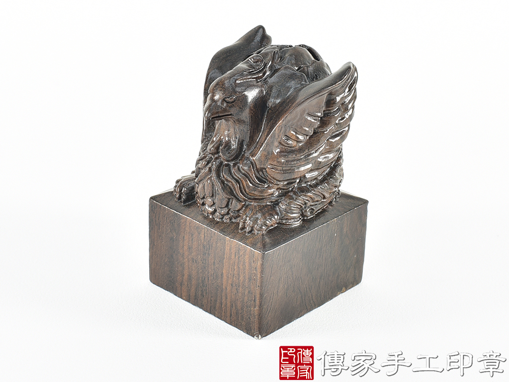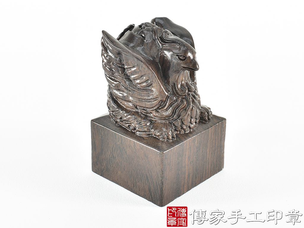 傳家手工印章實際成品:頂級黑檀木精雕鳳凰廟章合照