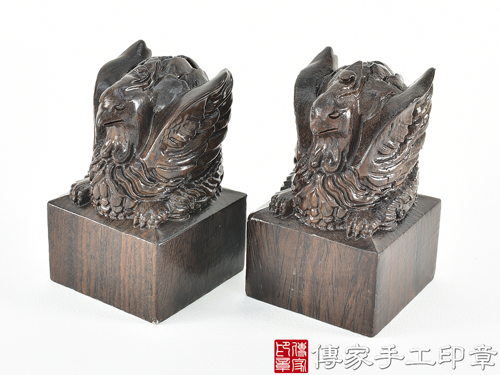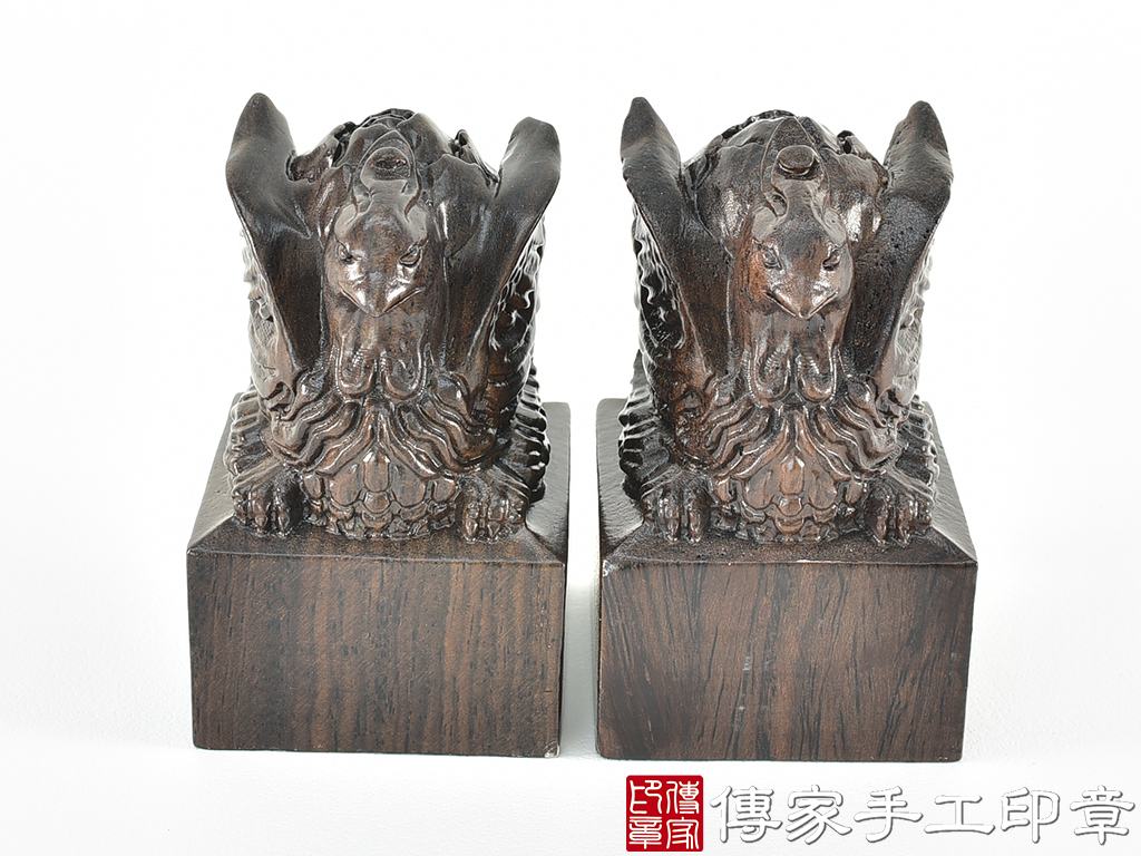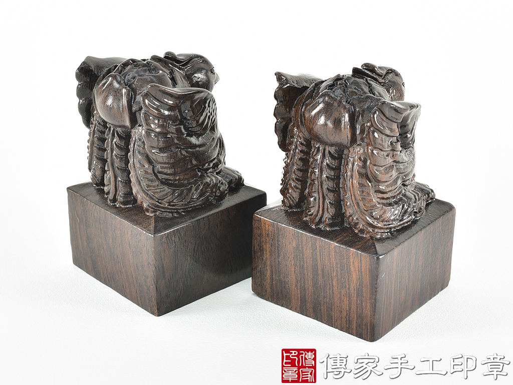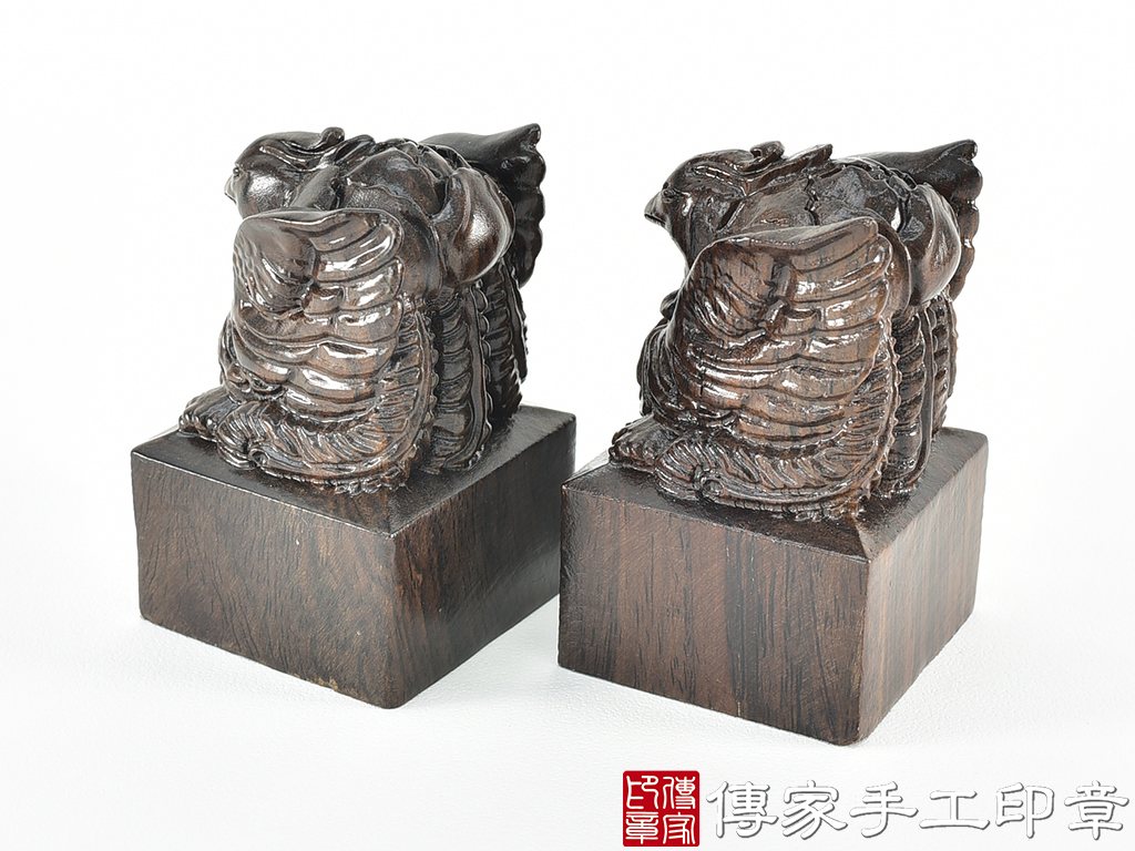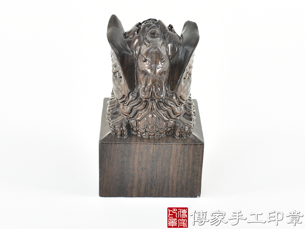 傳家手工印章實際成品:頂級黑檀木精雕鳳凰廟章合照