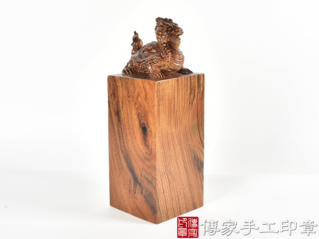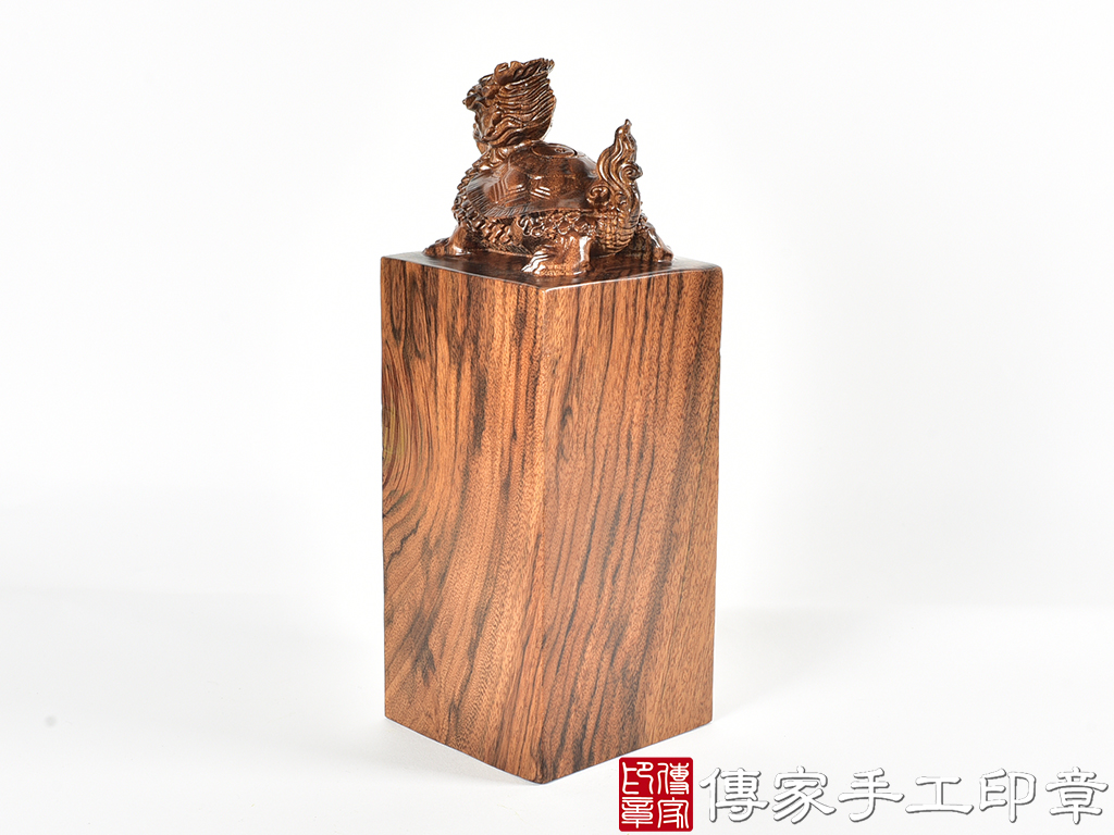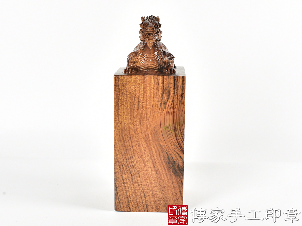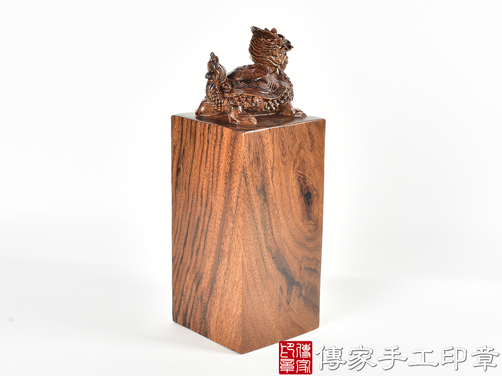 傳家手工印章實際成品:頂級紅紫檀木精雕龍龜廟章合照