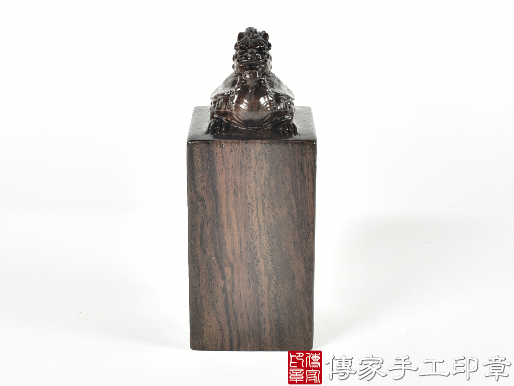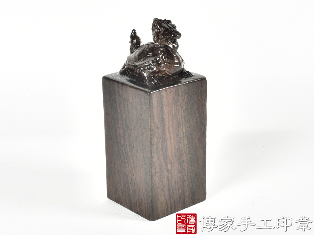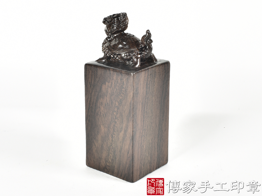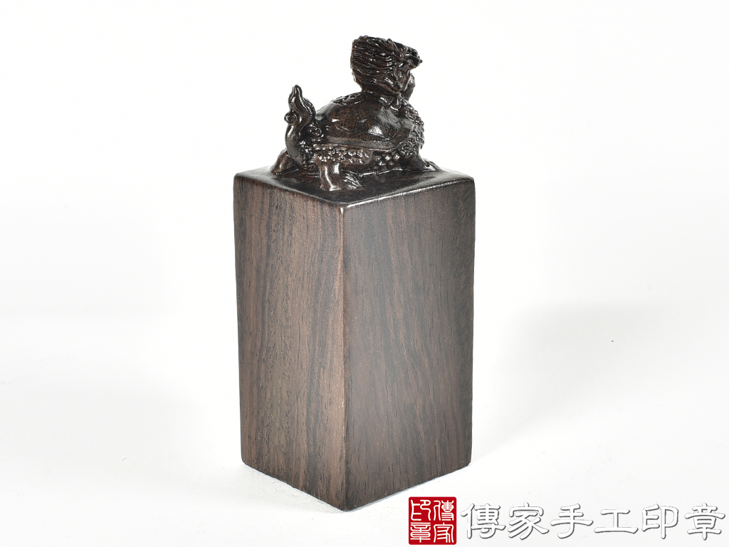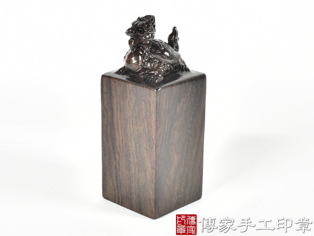 傳家手工印章實際成品:頂級黑檀木精雕龍龜廟章合照