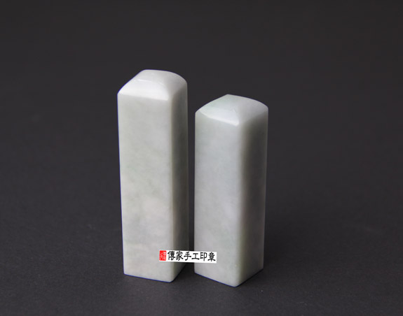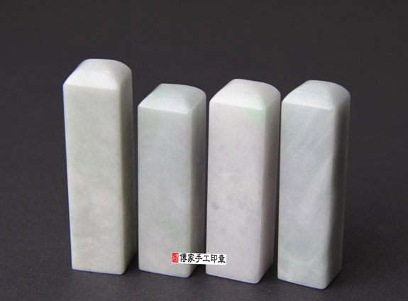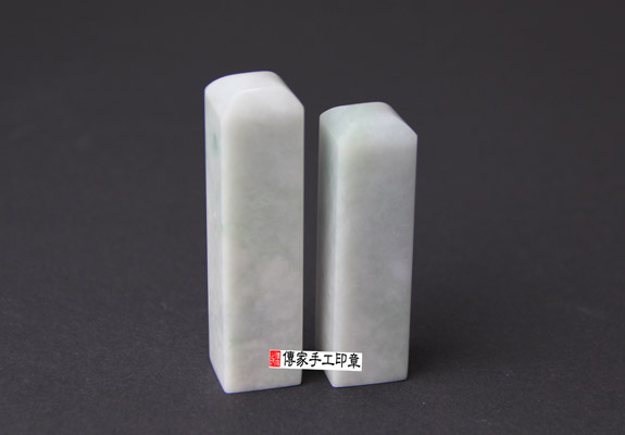 一. 傳家手工印章實際成品: 頂級糯豆種白翡緬甸玉翡翠(一般型) 及 頂級糯豆種白翡緬甸玉翡翠(加長型)