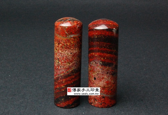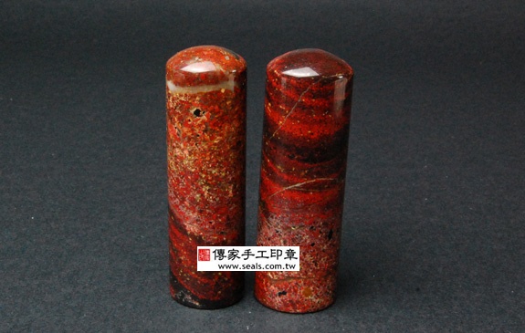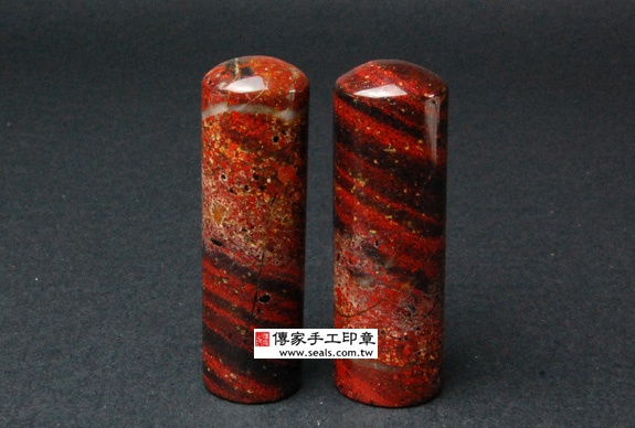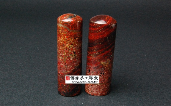 1. 傳家手工印章嚴選高級「彩虹玉」。彩虹玉的硬度很硬。具備半透亮的質地、顏色、光澤都顯為少見,特別其紅色集於一身,更為中國人所代表喜慶。