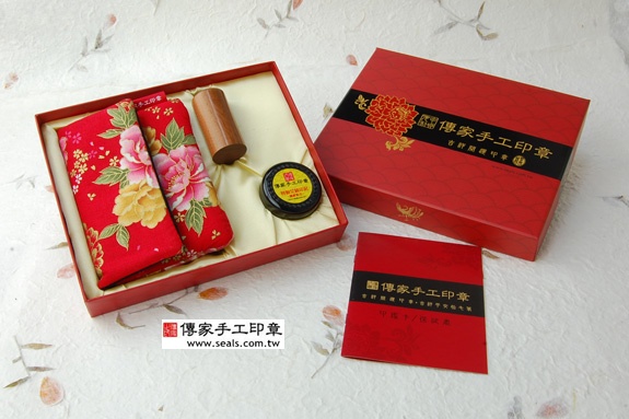 一. 傳家手工印章,出貨包裝精美大器,完整全配出貨禮盒包裝內容包含:高級燙金牡丹花吉祥紅色禮盒(有手提握把)1個、加厚防震日式風格印章外出攜帶手工袋1個(手工帶可以放雙章,顏色和花色很多,男生女生都可以使用)、獨家手工艾草印泥1個(日本印油)、印鑑卡保證書1張。