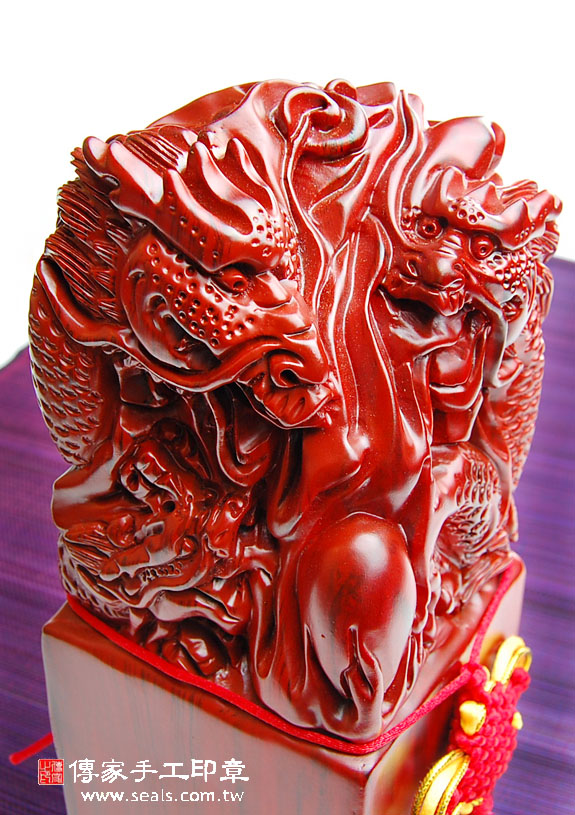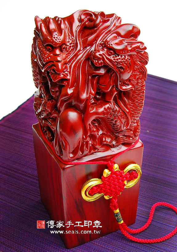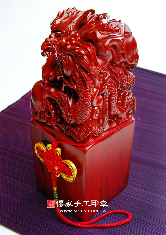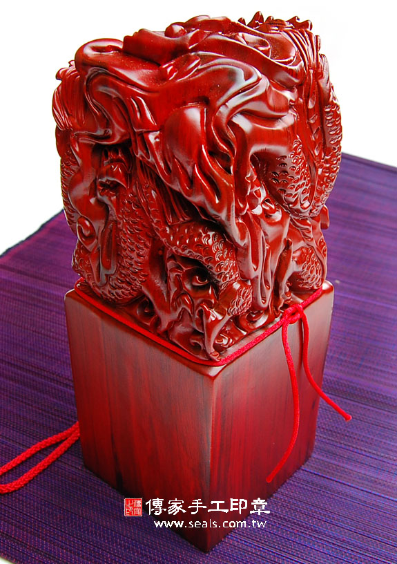 頂級中國雞血紅壇木廟章精雕龍吐珠:廟章、神明印章、大印章會依現貨尺寸不同,每一隻印章的定價都不一樣。