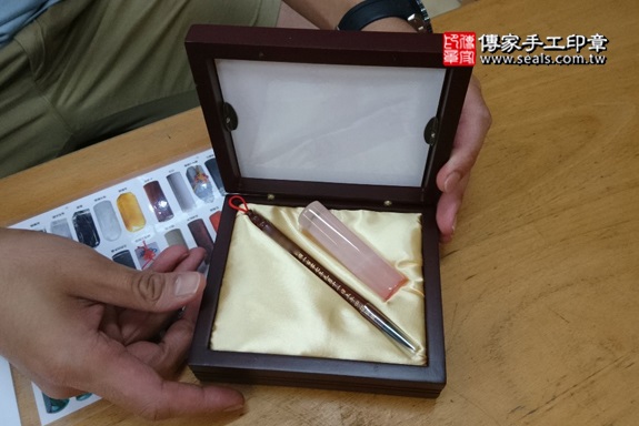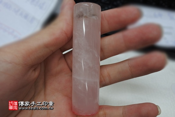 這是李爸爸為寶寶所挑選的印章材質,粉晶,