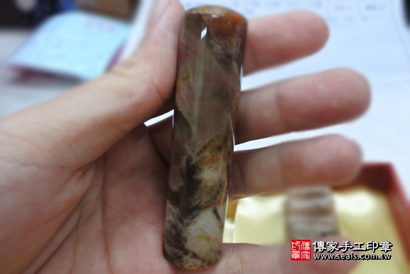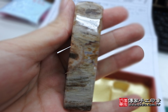 這是吳先生挑選的印章材質,木化石,