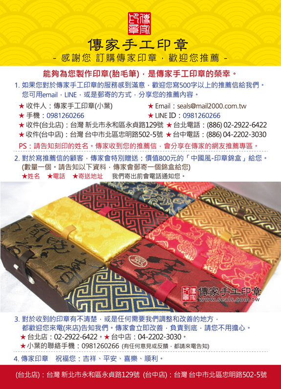 推薦大家來傳家做寶寶的發財章與胎毛筆喔!