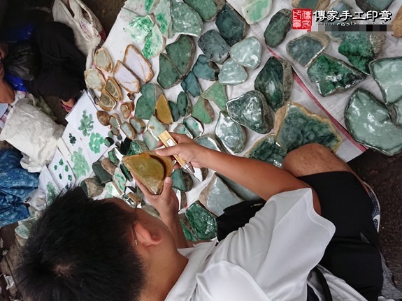 傳家手工印章,專業的玉石購買人員,直接在緬甸玉翡翠開場的礦區,