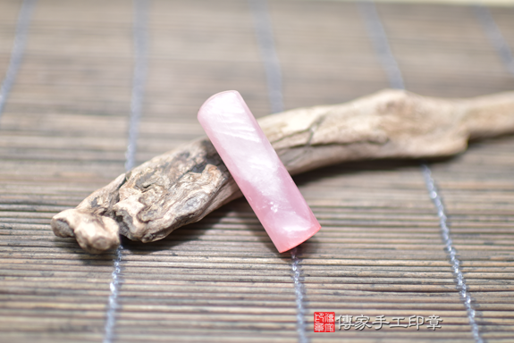 全手工噴砂印章:粉晶開運印章實際成品、印章作品分享、粉晶印章材質介紹。(銀行印鑑,一圓一方)傳家手工印章台中店。2020.10.01