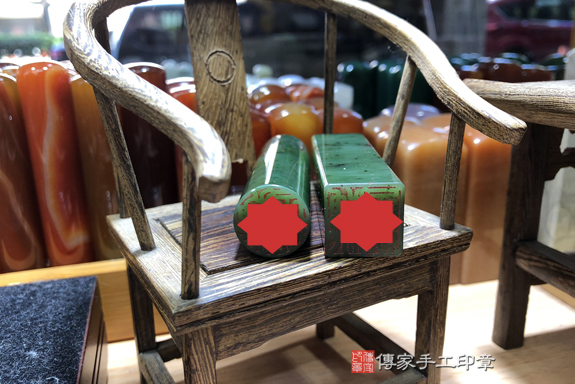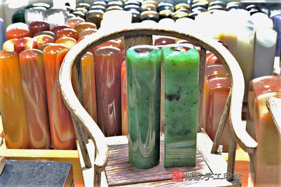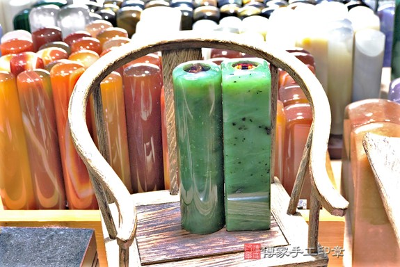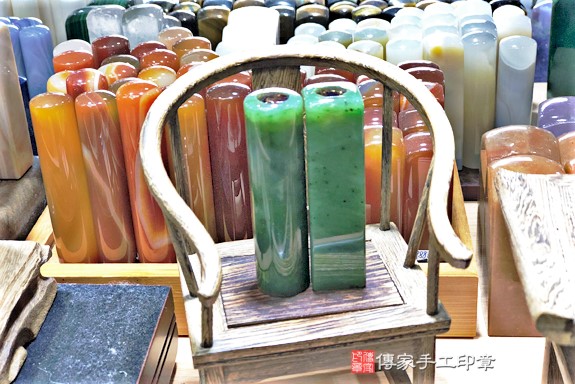 傳家的印章材質超過200種以上,印章庫存超過5萬個,各種半寶石、玉石、木質、牛角印章都有喔!