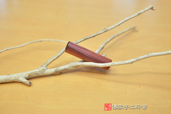 玫瑰紅檀木在印章的頭頂挖洞,放一張小片的金箔紙,