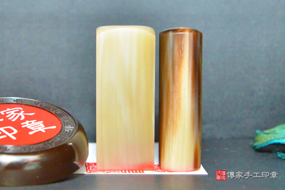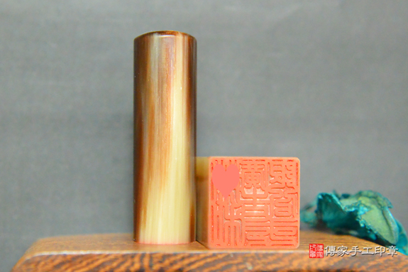 赤牛角材質堅硬,印章都看得到牛角心,給人的感覺是很溫潤,質樸無華。
