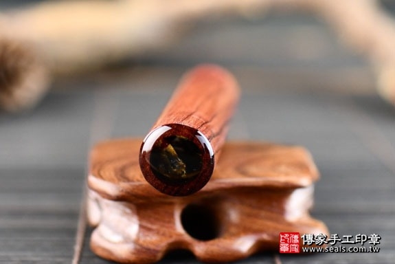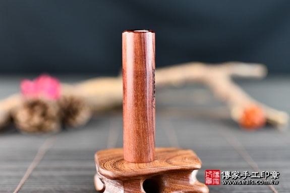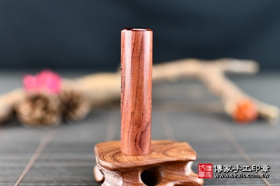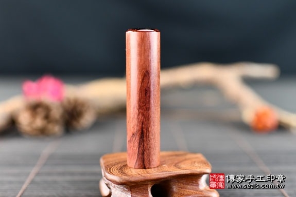 客人所挑選的是玫瑰紅檀圓章。