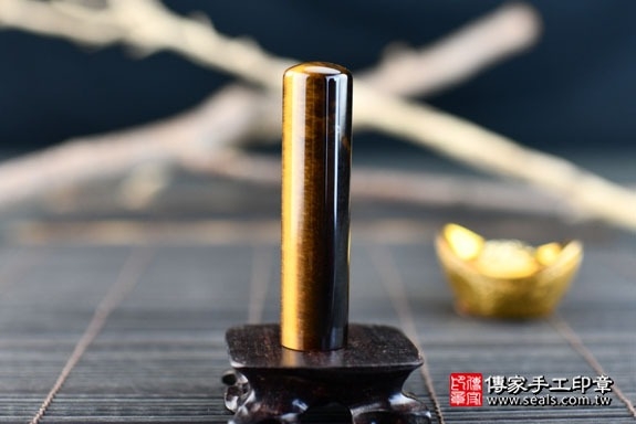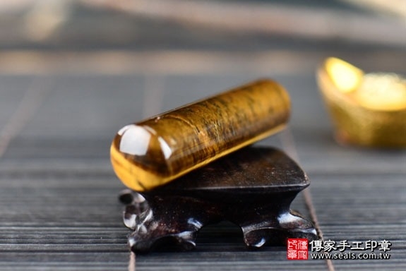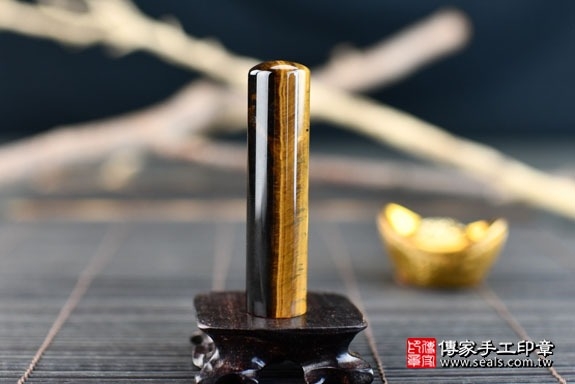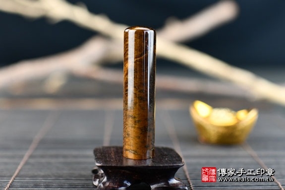在日本,虎眼石印材是當地的男生最愛的印材之一,「虎眼石」從字意來看就是老虎的眼睛,具有威猛的含意,很適合大器的男生來使用。
