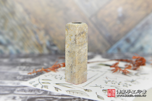 傳家手工印章嚴選高級「菊花石印章」。菊花石的硬度大約是4.5~5.5度,是常用的印材之一。