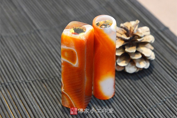 全手工噴砂印章:紅瑪瑙臍帶印章實際成品、印章作品分享、紅瑪瑙印章材質介紹。(臍帶印章、肚臍章、肚臍印章,臍帶印章,一圓一方)傳家手工印章新竹店。2020.04.06圖片3