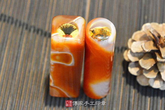 全手工噴砂印章:紅瑪瑙臍帶印章實際成品、印章作品分享、紅瑪瑙印章材質介紹。(臍帶印章、肚臍章、肚臍印章,臍帶印章,一圓一方)傳家手工印章新竹店。2020.04.06
