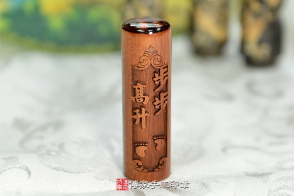 電腦刻印印章:紅紫檀木臍帶章實際成品、印章作品分享、紅紫檀木印章材質介紹。(臍帶印章、肚臍章、肚臍印章,胎毛印章,一圓一方)傳家手工印章新竹店2020.05.05圖片4