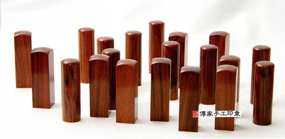 紅紫檀木印章是最多人使用的印材之一,原因在於紅紫檀木印章具有天然的紋路和樹木的年輪,隨著時間的使用,紅紫檀木會越放越紅,色澤也會越來越光亮,非常適合印章的材質